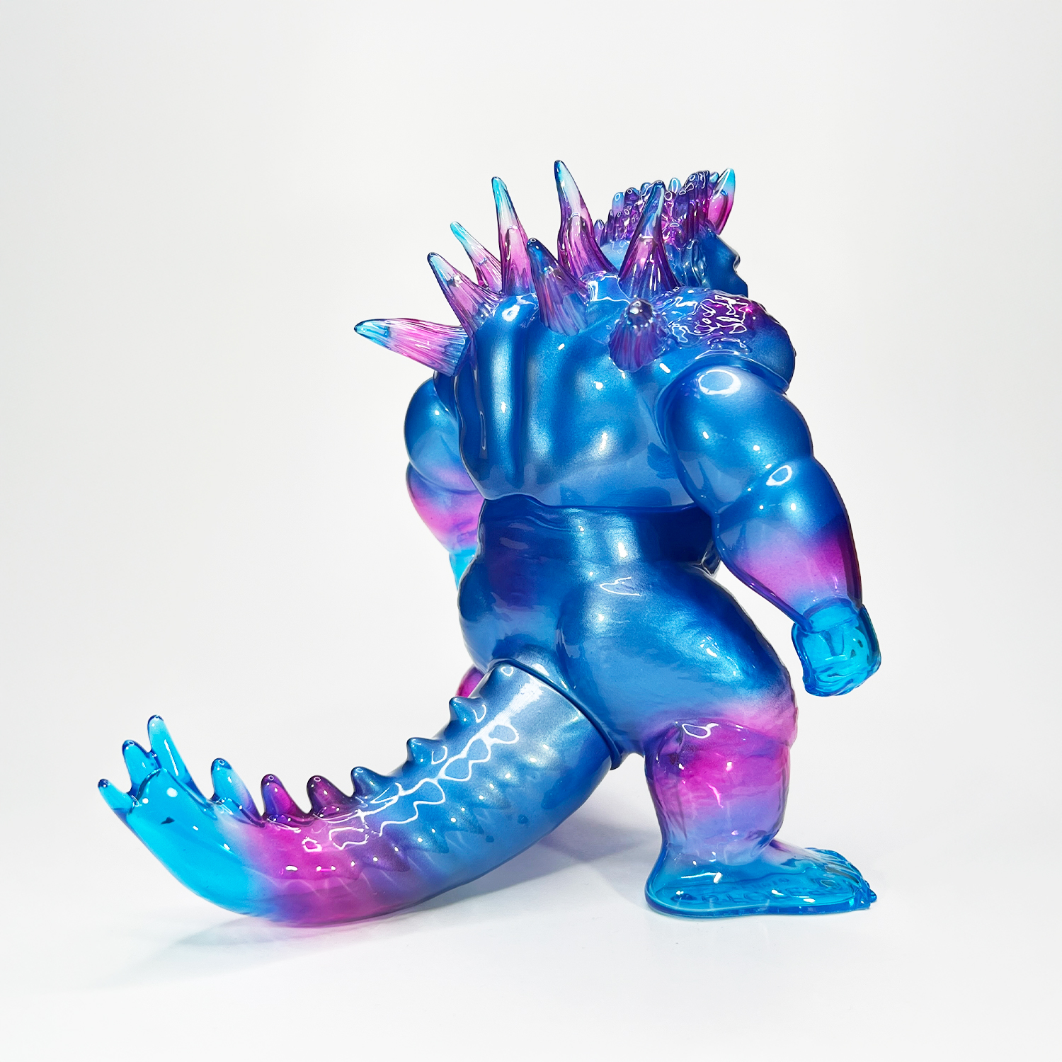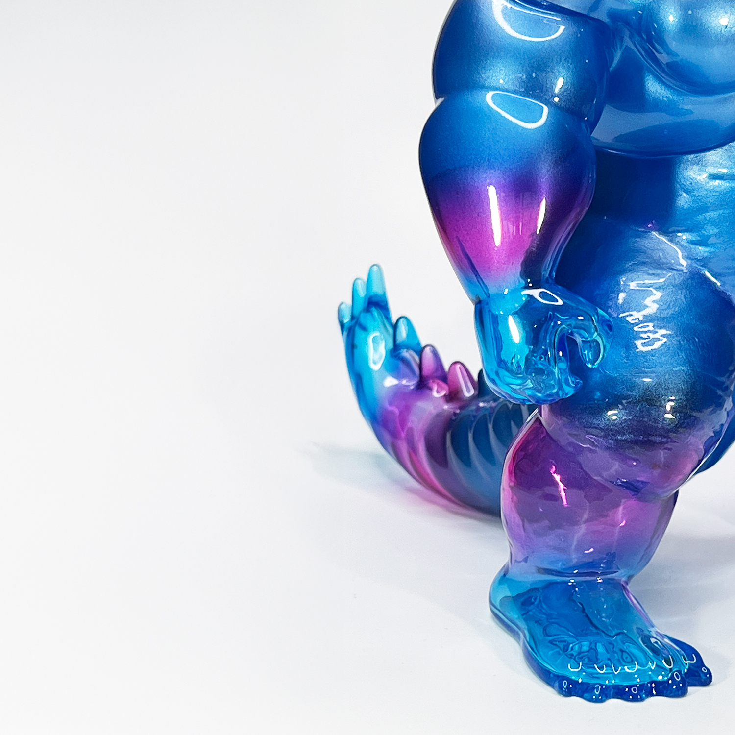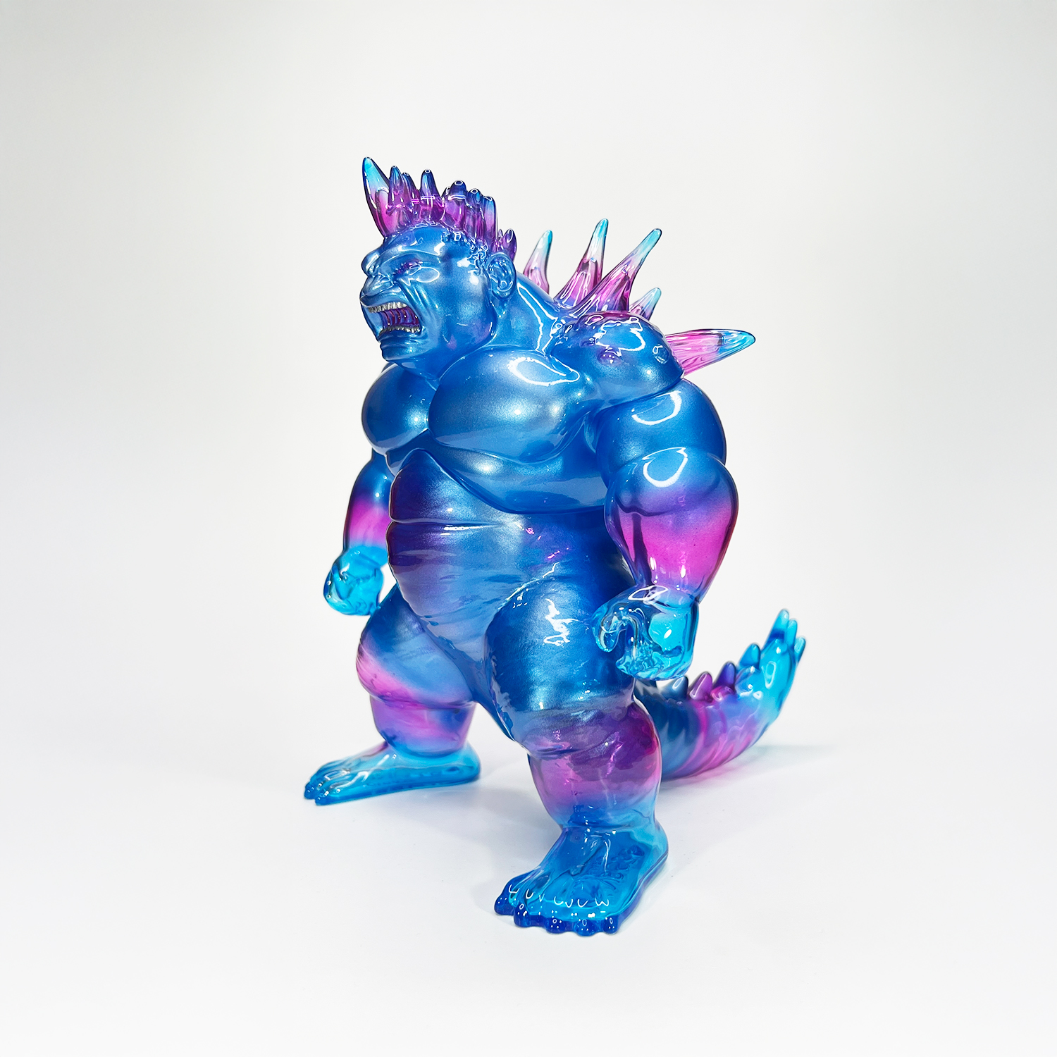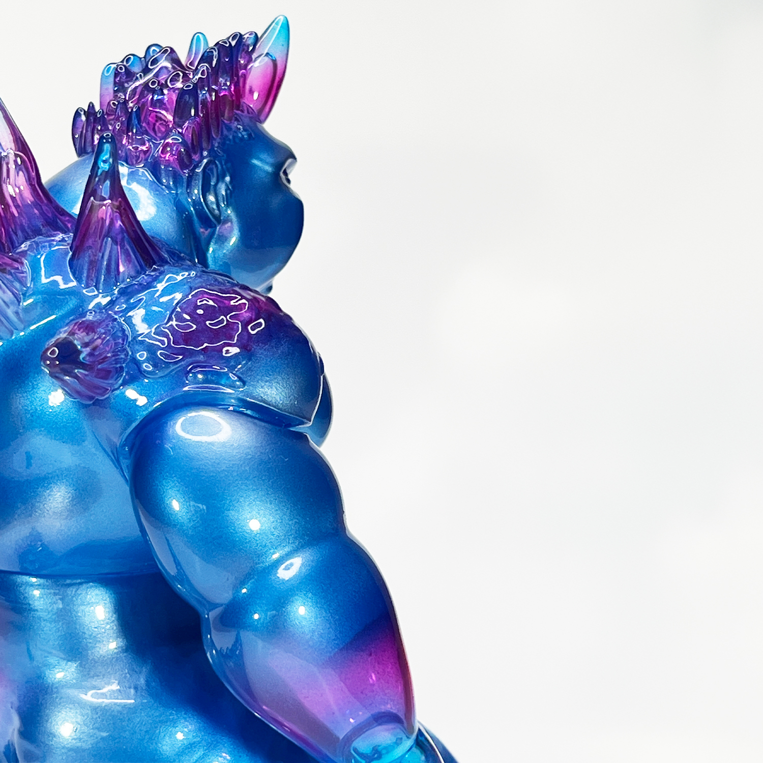 Fightzilla by Ulyss3s is a reinterpretation of the iconic kaiju–sumo hybrid. In this Open Edition, the 6Forest Team presents Metallic-Blue, created from transparent sofubi and elevated with hand-painted gradients of silver, blue, and violet. Finished with an ultra-glossy varnish, the figure radiates a luminous depth, shifting tones as light reflects across its surface. Produced in a traditional Japanese sofubi workshop in Tokyo, Metallic Blue exemplifies the fusion of artisanal vinyl craft with contemporary chromatic experimentation, resulting in a dazzling collectible.