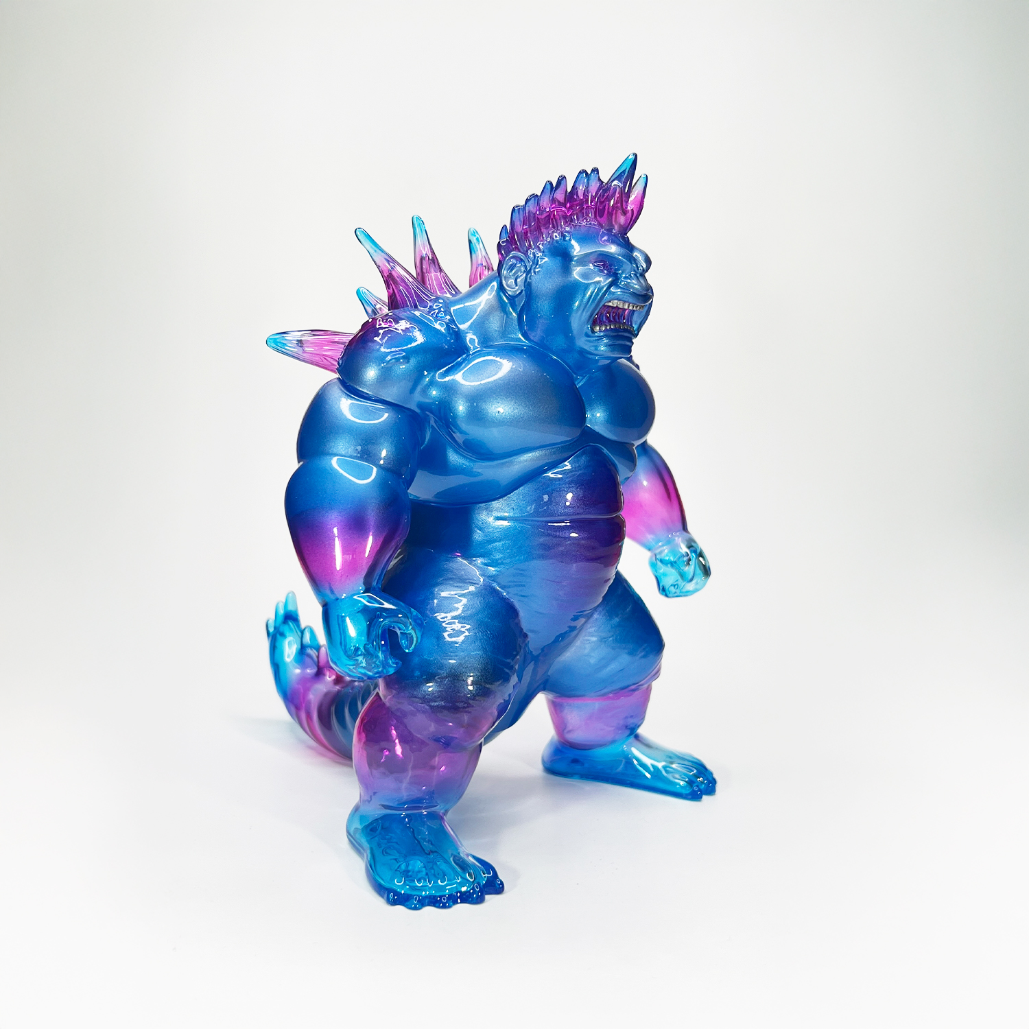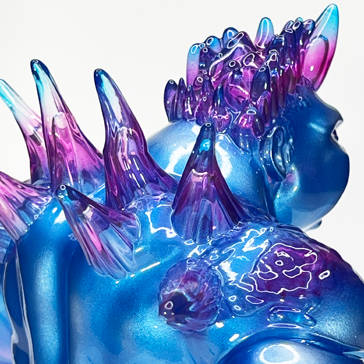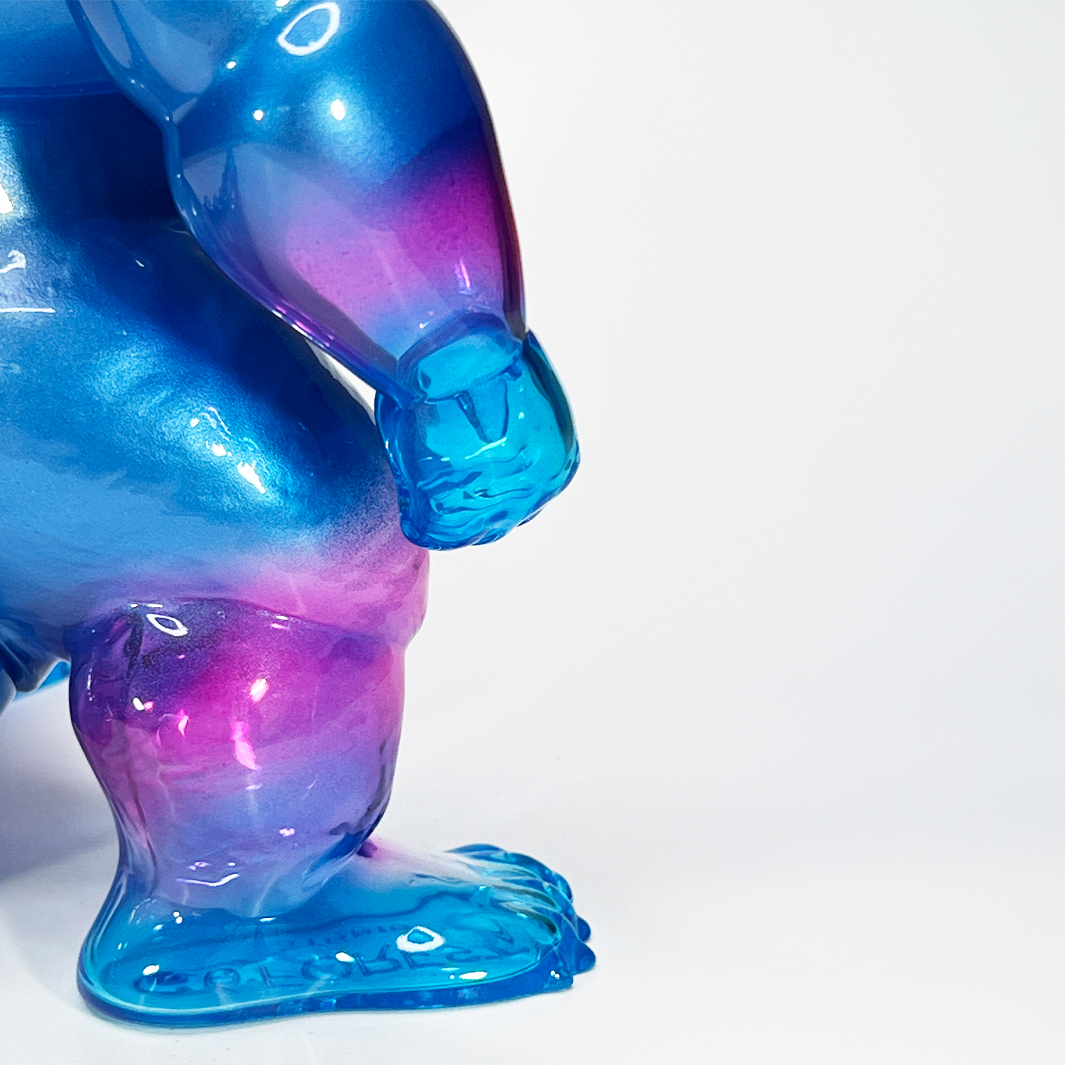 Fightzilla by Ulyss3s is a reinterpretation of the iconic kaiju–sumo hybrid. In this Open Edition, the 6Forest Team presents Metallic-Blue, created from transparent sofubi and elevated with hand-painted gradients of silver, blue, and violet. Finished with an ultra-glossy varnish, the figure radiates a luminous depth, shifting tones as light reflects across its surface. Produced in a traditional Japanese sofubi workshop in Tokyo, Metallic Blue exemplifies the fusion of artisanal vinyl craft with contemporary chromatic experimentation, resulting in a dazzling collectible.