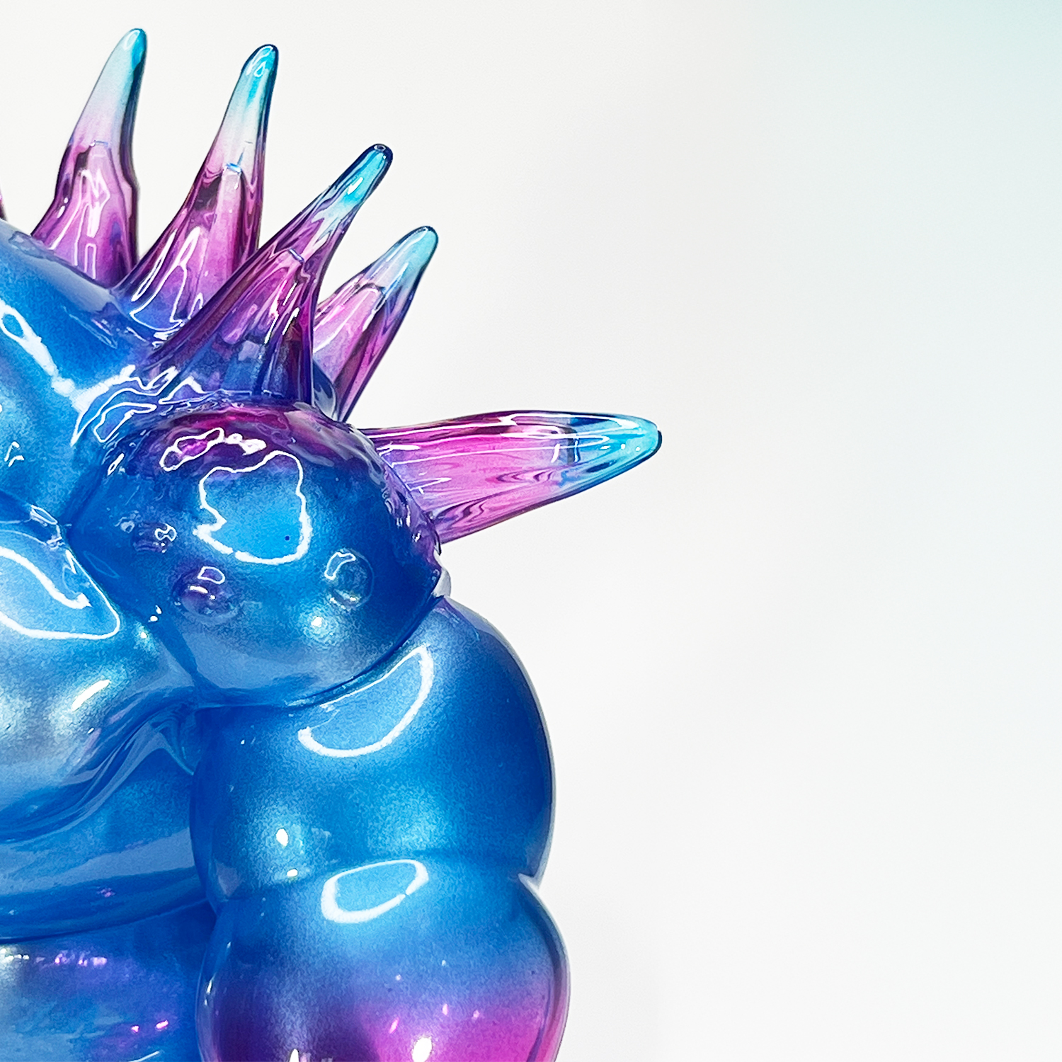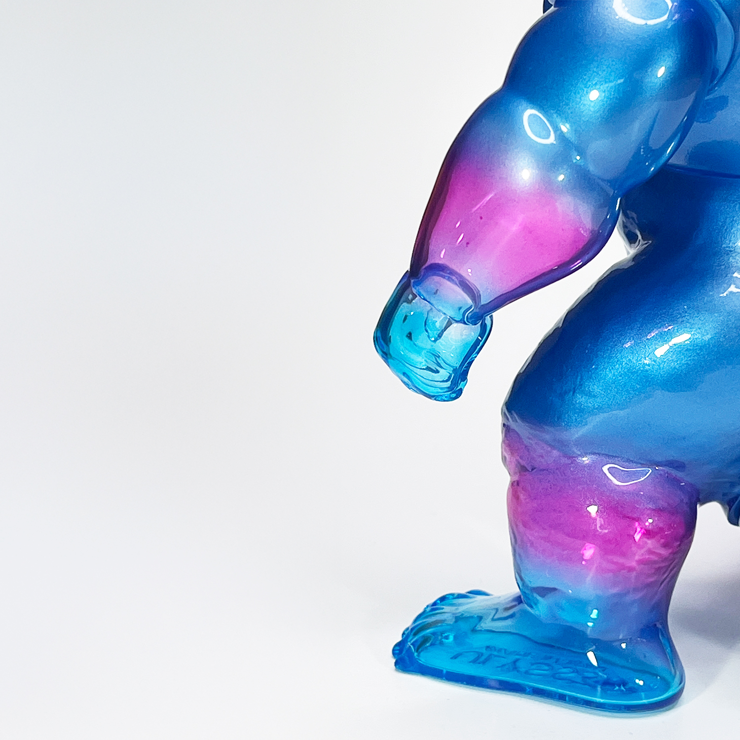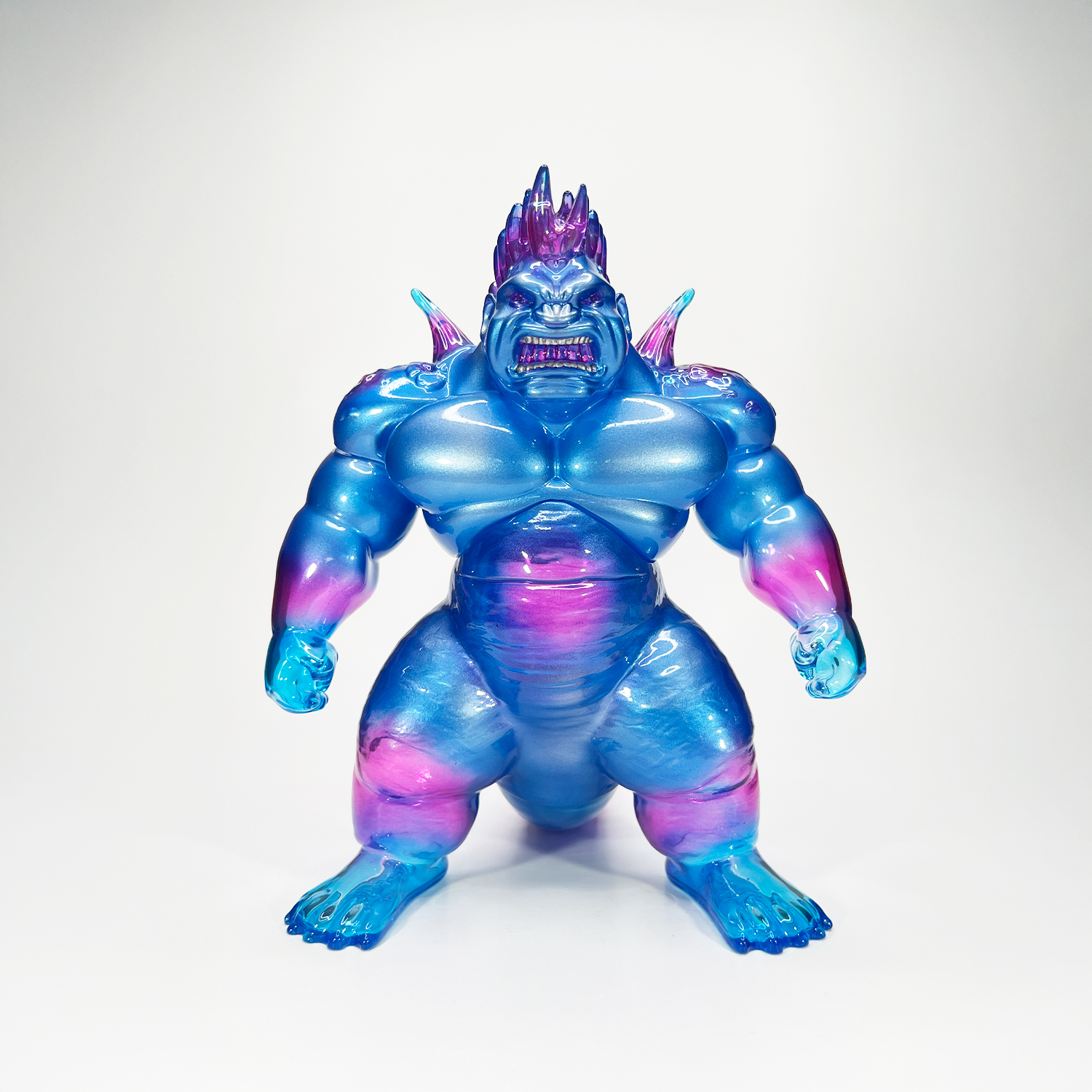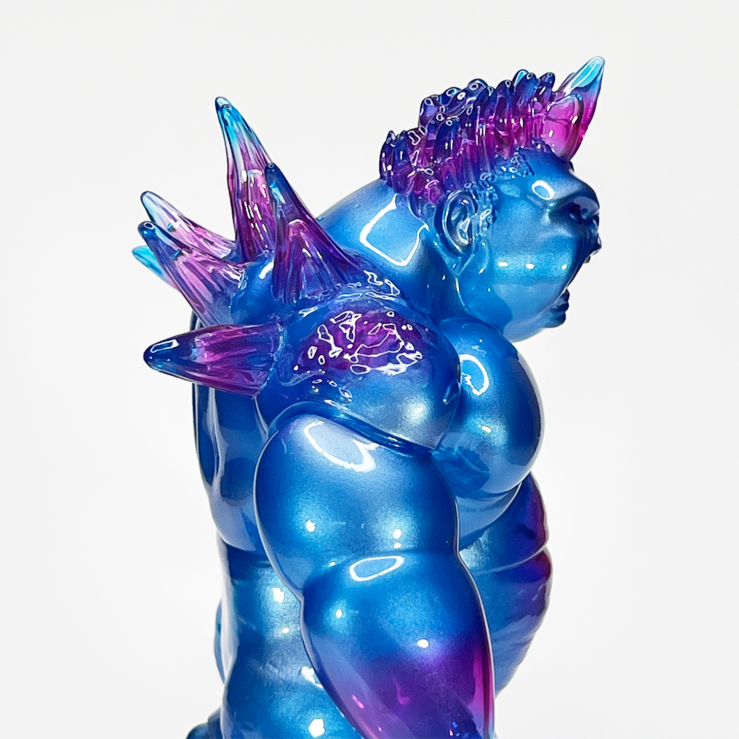 Fightzilla by Ulyss3s is a reinterpretation of the iconic kaiju–sumo hybrid. In this Open Edition, the 6Forest Team presents Metallic-Blue, created from transparent sofubi and elevated with hand-painted gradients of silver, blue, and violet. Finished with an ultra-glossy varnish, the figure radiates a luminous depth, shifting tones as light reflects across its surface. Produced in a traditional Japanese sofubi workshop in Tokyo, Metallic Blue exemplifies the fusion of artisanal vinyl craft with contemporary chromatic experimentation, resulting in a dazzling collectible.