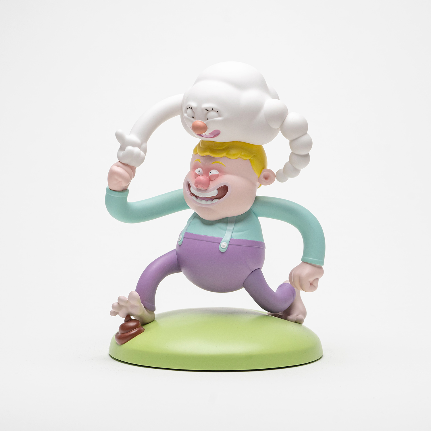 SHITTER is a hand-painted vinyl sculpture by British artist Jon Fox, created in collaboration with 6Forest Studio. Finished with matte varnish, this 20 cm figure captures a blissful moment seconds before disaster: barefoot, happy, in tune with nature—yet about to step into a massive pile of dog poop. This comic yet philosophical twist reflects the unpredictable dualities of life. Is it bad luck, karma, or a cosmic joke? Limited in edition, SHITTER is a humorous and poignant piece for collectors who appreciate art with both depth and a wink.